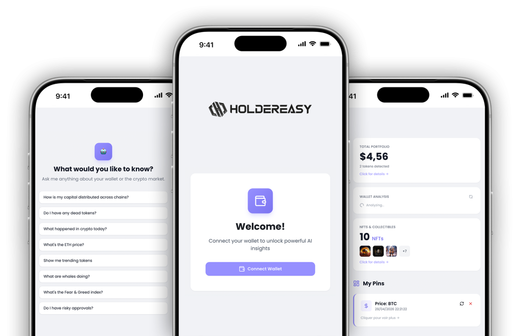 Holdereasy is your AI-powered crypto assistant. Ask anything about your wallet, your holdings, or the broader crypto market and get clear, instant answers backed by real on-chain data.